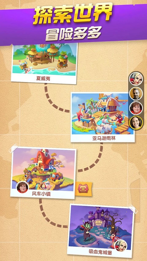 收集卡牌获得丰厚的宝藏,加速小镇升级!同时每次的小镇升级,都能带来更好的宝藏,更好的享受收集的快感!