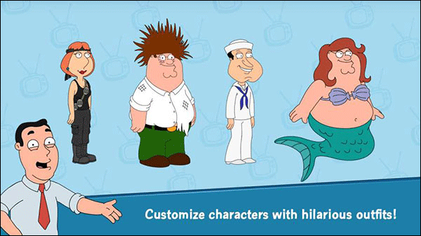 3、游戏过程中,玩家还可以解锁很多有趣的服装为你的角色打扮一番,像美人鱼彼得,身穿比基尼的Quagmire,兰博版洛伊丝等;