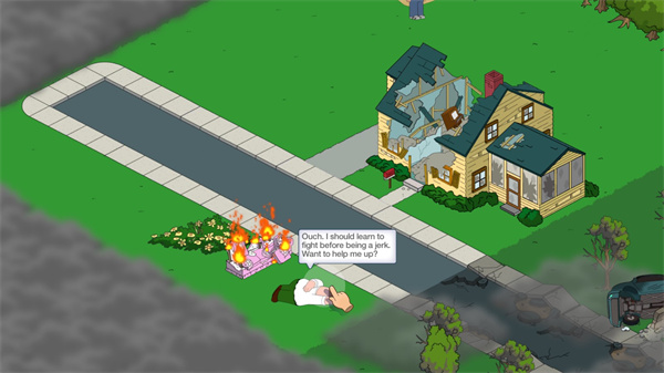 1、恶搞之家游戏按照动画原本的故事情节发展,其玩法偏向于模拟养成类,一如既往地无厘头风格,一开场就是火鸡大战彼得·格里芬。经过了惊天动地的激战之后,从玩家点击救起彼得的那一刻起,游戏才真正开始;