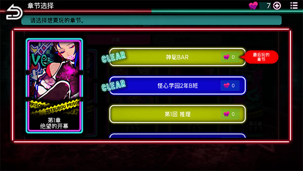 2、选择游戏章节