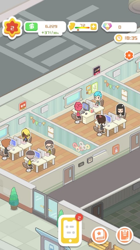 游戏内房间数量会随着公司等级不断增加,如果你厌倦了固定的装饰视图,可以凭借自己对美学的理解,自主挑选合适的装饰品进行房间改造。简约、商务、可爱……任何风格都可以实现。同样可以改变风格的还有角色形象,在这里你可以实现穿衣自由,无论应对哪种场合,都可以根据个人喜好进行着装搭配。