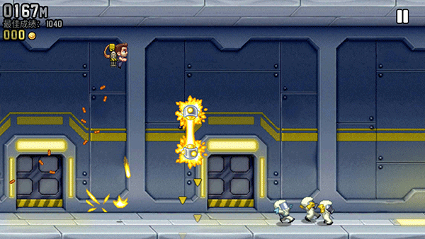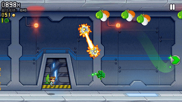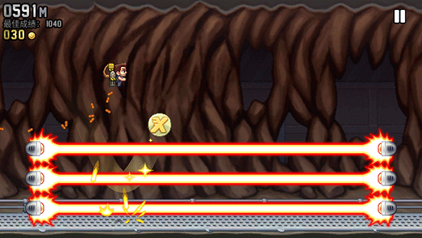 疯狂喷气机最新版本2026是一款非常有趣的横屏飞行跑酷手游,背景发生一个神秘的工厂里,主角barry为了阻止科学家的阴谋,于是潜入其中进行进行调查,并拿走了他们研究的个人火箭飞行器,但是在逃出过程中遇到了敌人开启的各种机关,而玩家则需要帮助主角barry成功从他们的包围逃脱出来。游戏画面清晰流畅,不同场景的更换,金币排列组合的华丽阵容,各种道具功能的使用都淋漓尽致地展现了出来,给玩家一种很强的视觉冲击效果,使得玩起来完全不会感觉厌倦乏味。