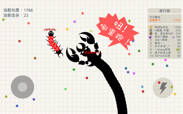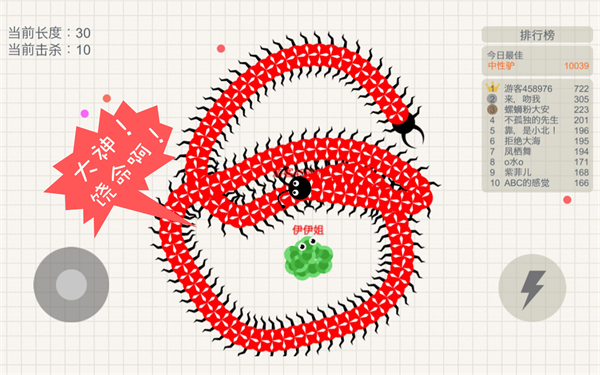 2、利用您的长度去摆出各种造型,去围堵更多的对手,让您的长度更快的增加;