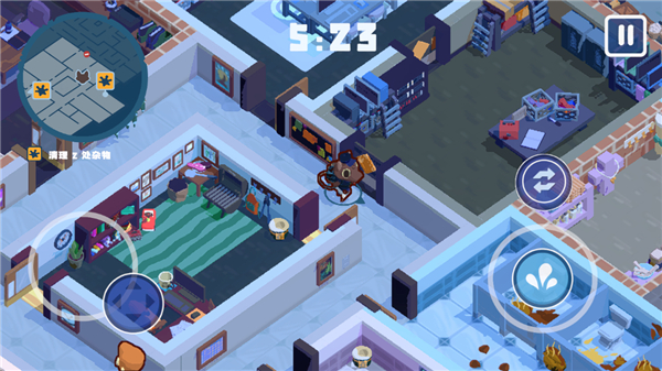 狼人清洁工手机版是自Steam平台移植而来的一款融合潜行玩法与黑色幽默的创意动作游戏,玩家将扮演一位名叫凯尔的狼人清洁工,你需要操控凯尔在加班的夜晚清理办公区域的污渍,同时谨慎躲避四处走动的员工视线。一旦被员工发现,凯尔的狼人本能会驱使他扑上前解决掉惊叫的员工,而玩家则必须赶在其他员工察觉之前,迅速清理现场并继续潜行。而随着清洁不断扩展的办公空间,你还可以利用各种工具协助任务,在紧张又充满戏谑感的氛围中完成这场特殊的“夜间保洁”!