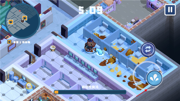 4、来到处理区域点击右下角开启清理开关瞄准垃圾进行清理;