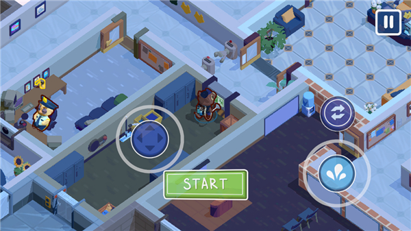 1、玩家进入狼人清洁工游戏,移动角色来到门口点击START开门进行任务对话;