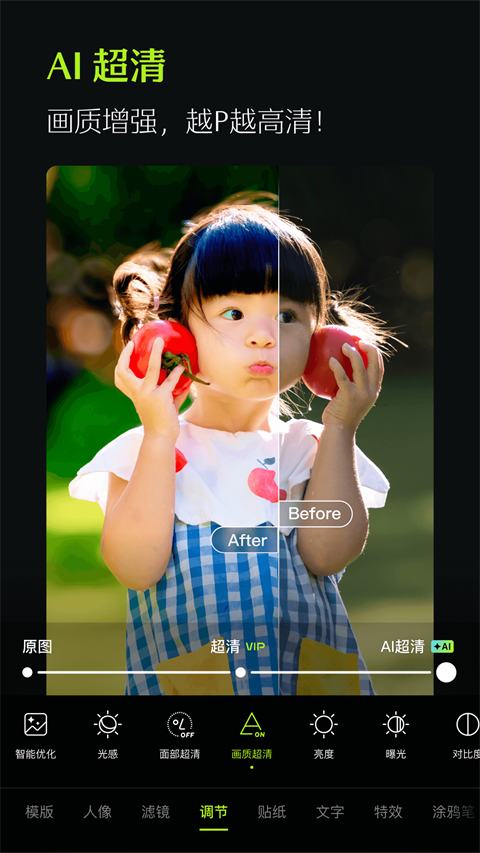 7、软件还能随时调整图片细节,微调图片的同时,照片上人物的个人特征也能得到保留。