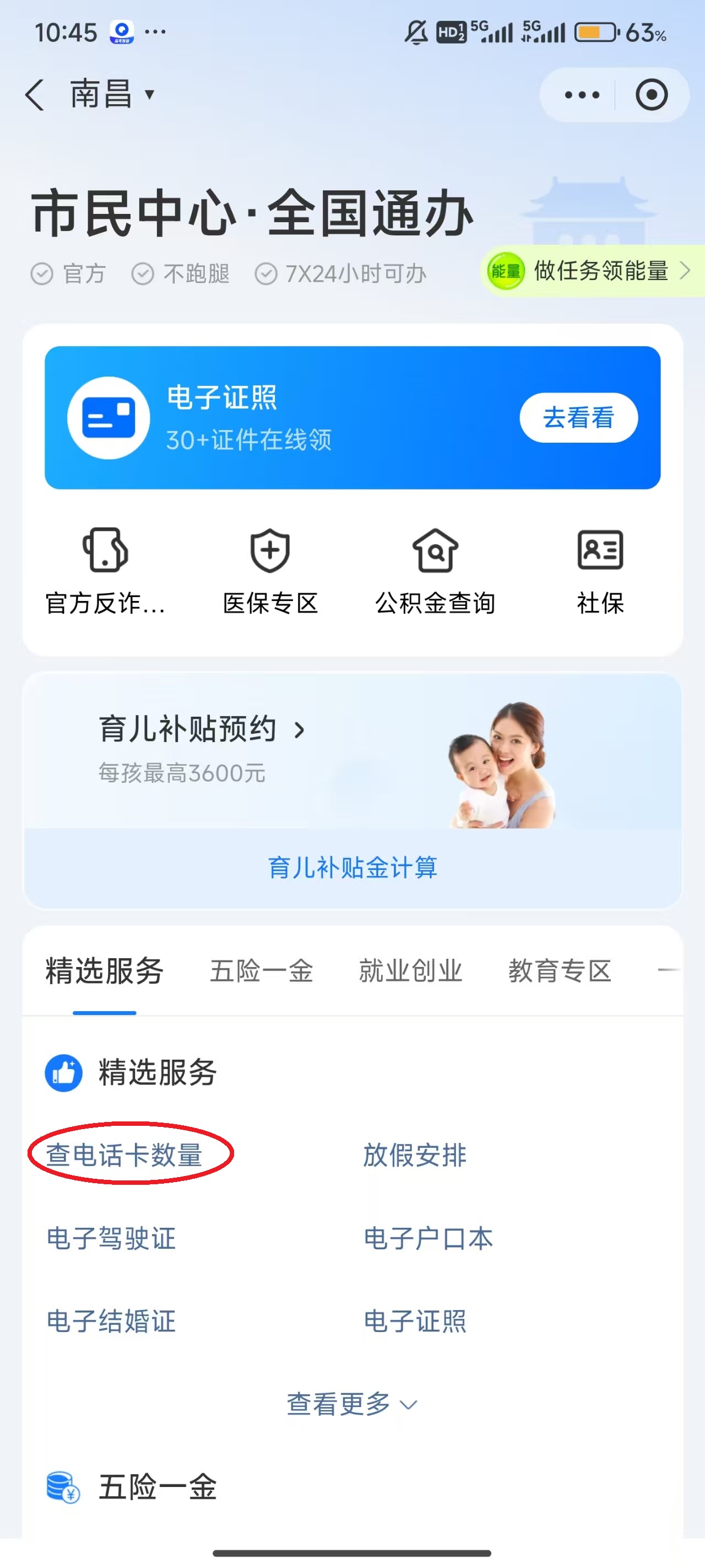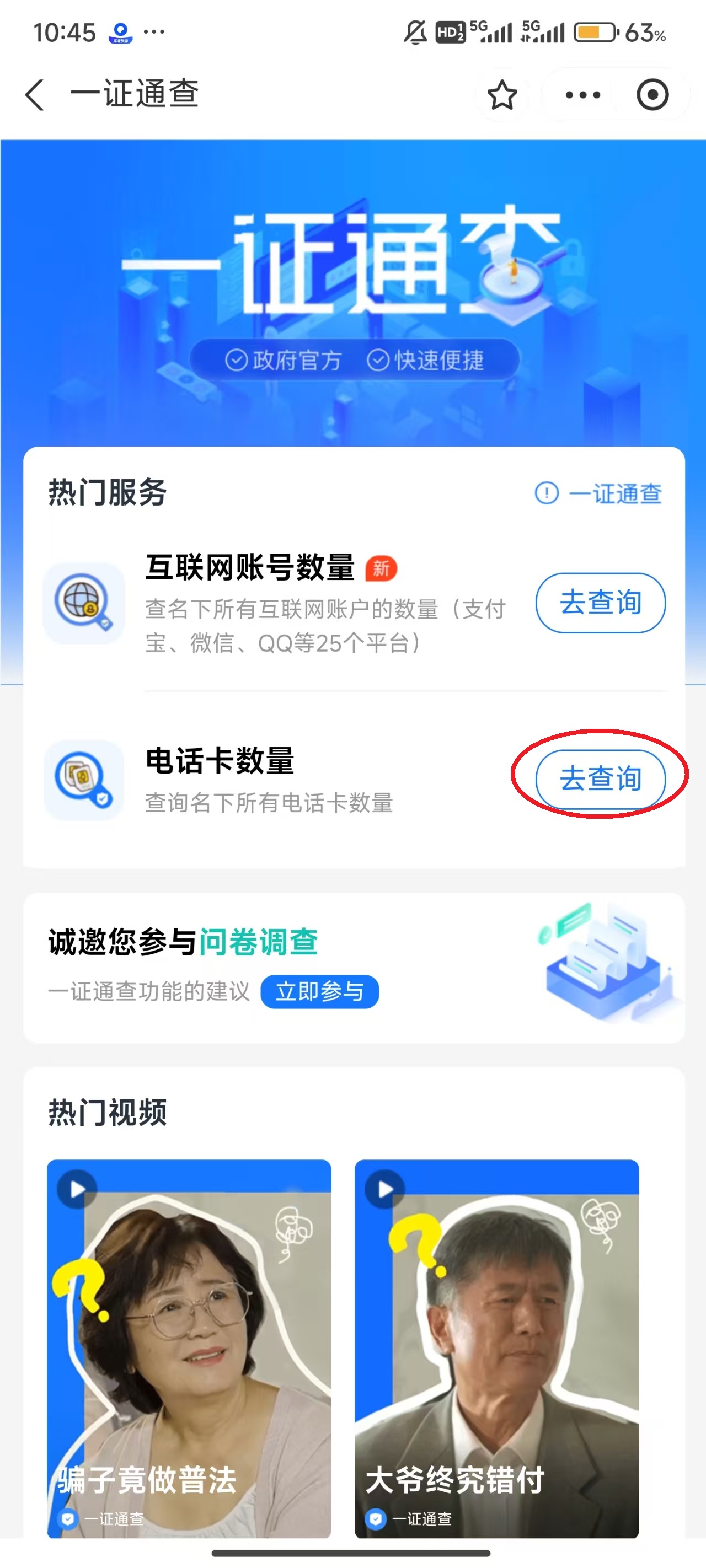 4、找到“电话卡数量”,随后点击屏幕右侧的“去查询”。