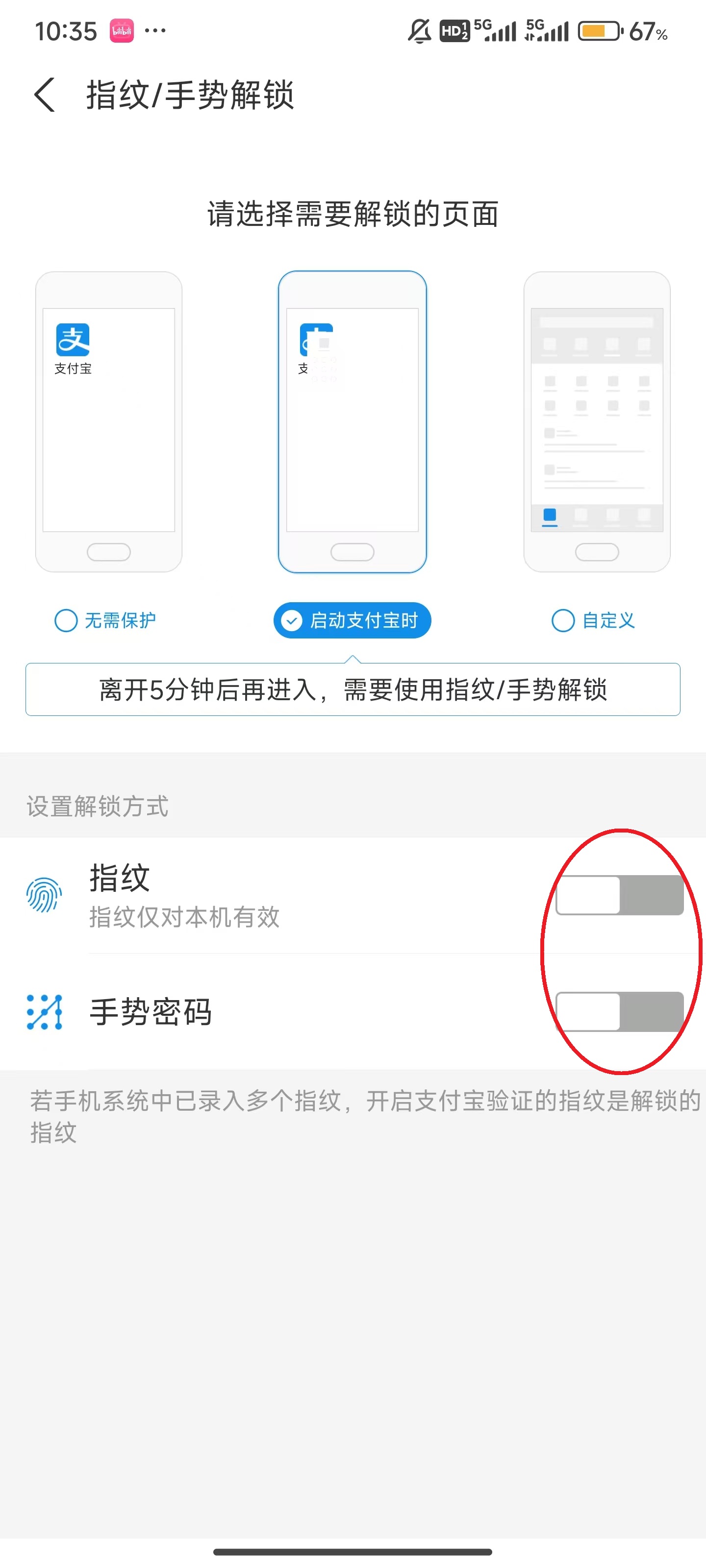 6、随后根据用户需求,来决定,选择指纹或者手势。