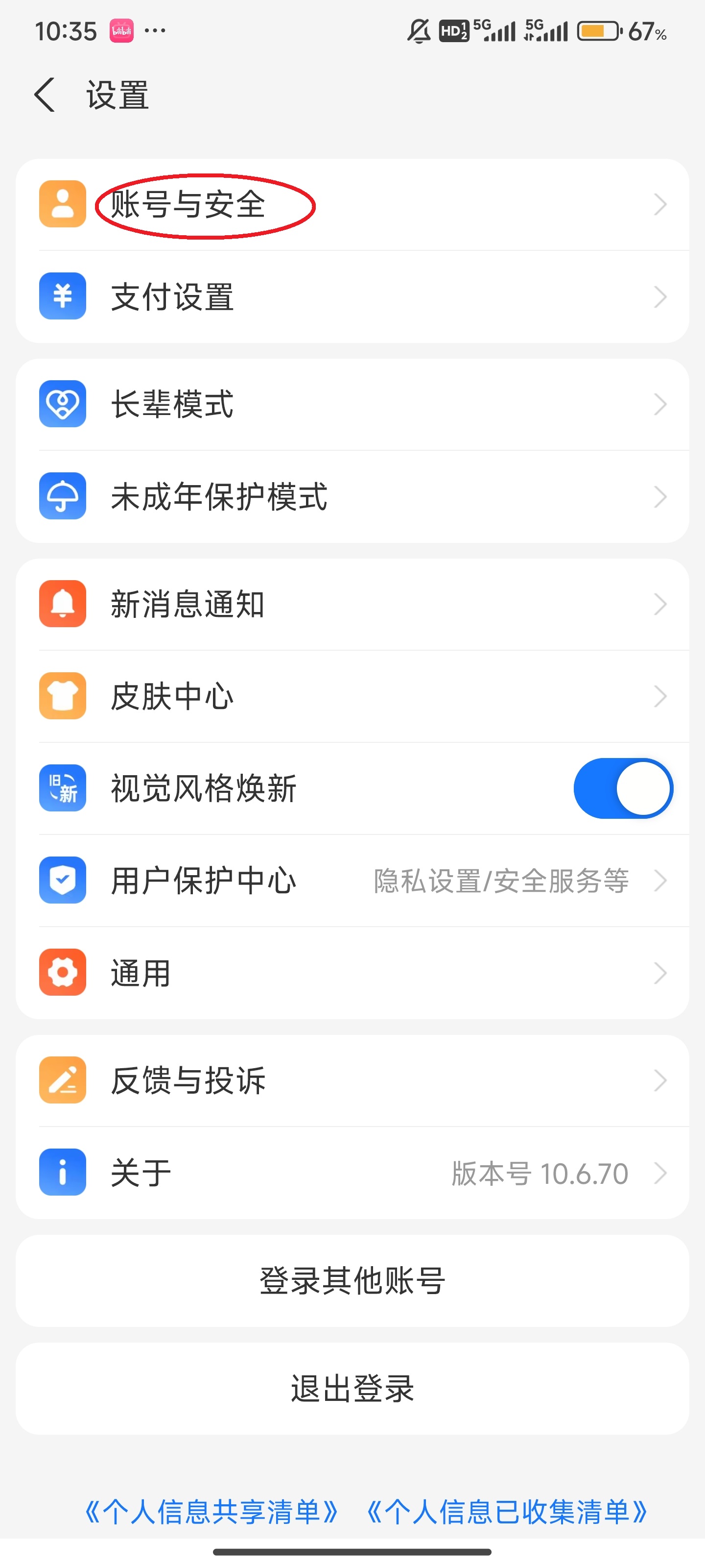 3、点击“账号与安全”。