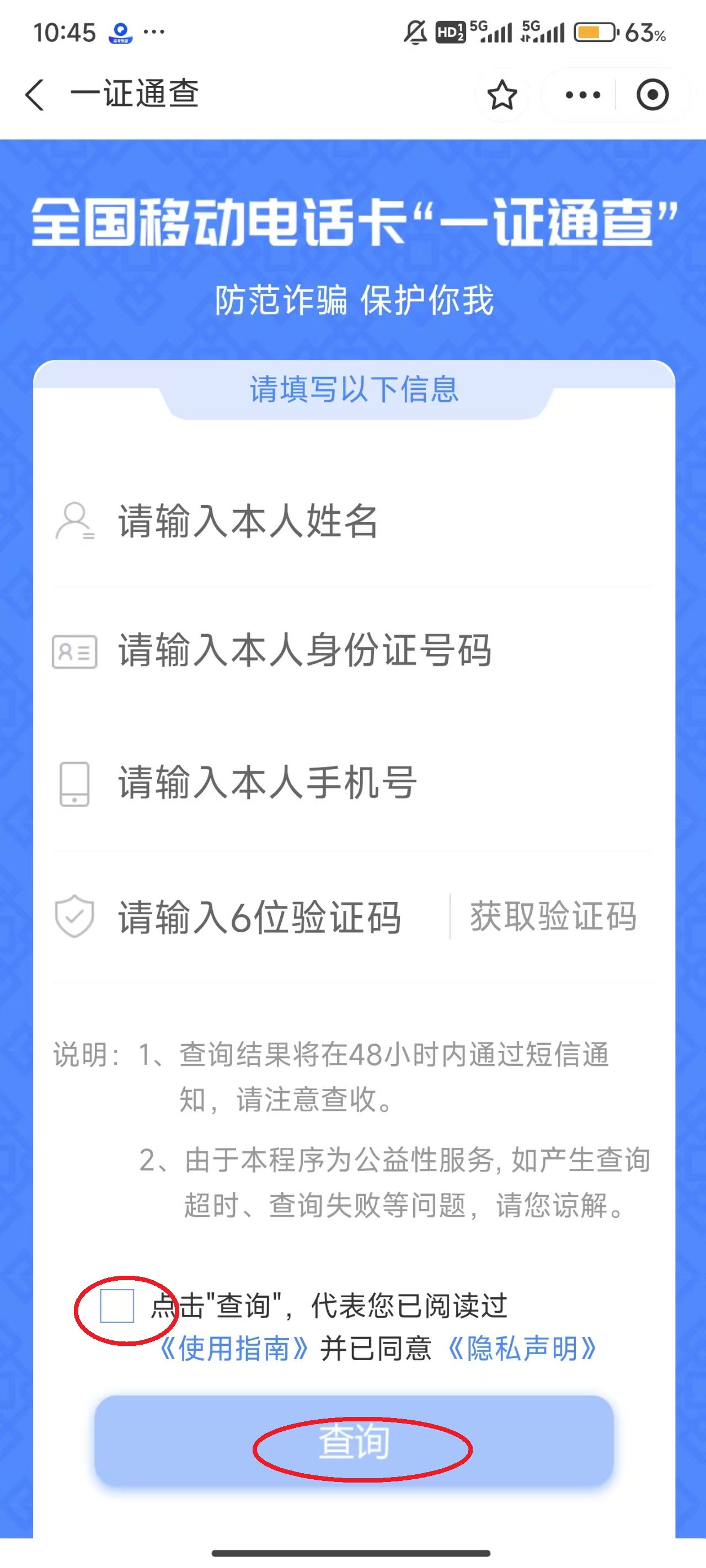5、填写相关信息,点击下方的“同意...”,然后点击“查询”。