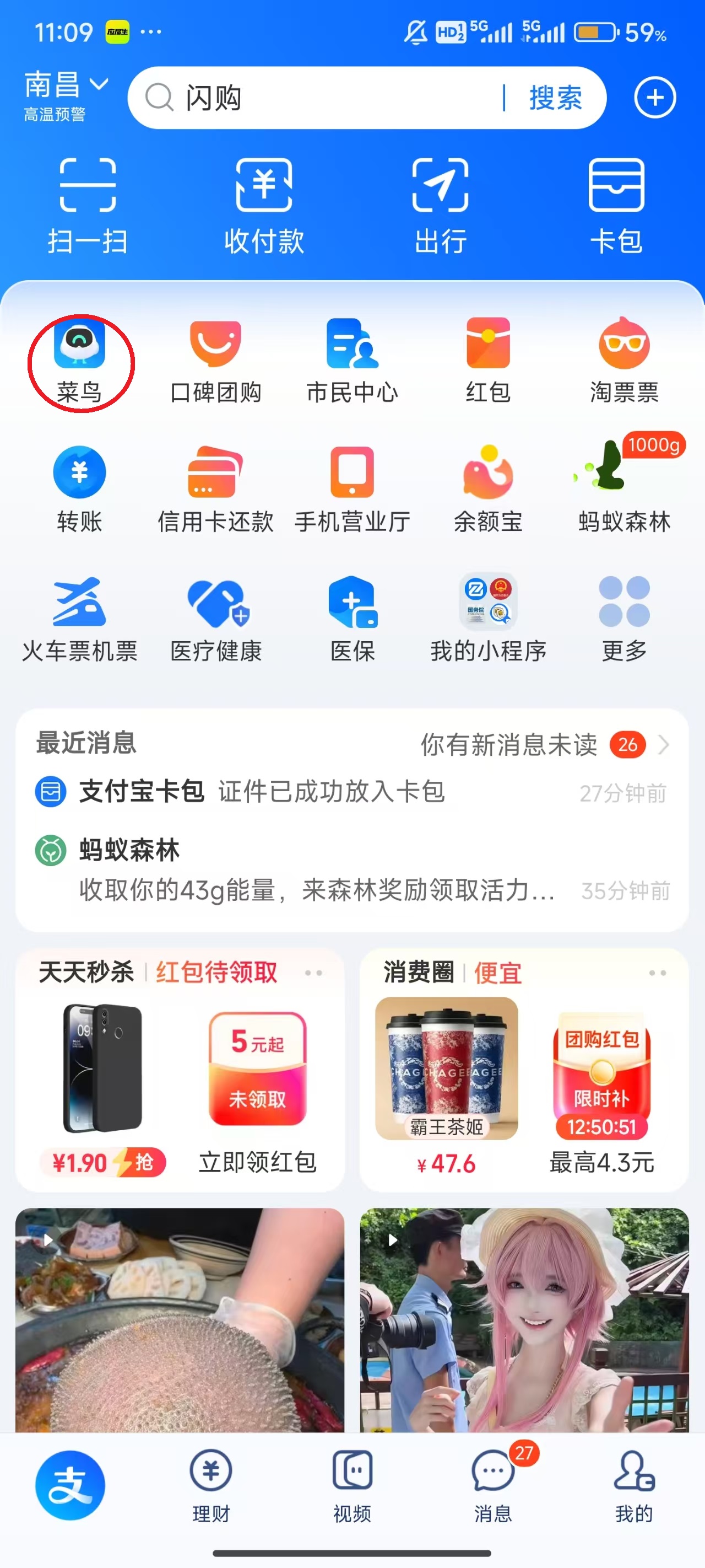 1、点击屏幕左侧的“菜鸟”。