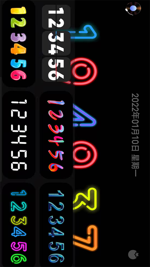 有超酷炫时钟主题,如复古时钟、电子时钟、辉光管、fliqlo翻页字体、炫彩时钟、彩虹时钟、极简翻页时钟等。
