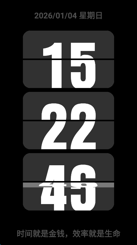 FlipClock翻页时钟是一款可将翻页时钟放置于手机桌面的个性化应用,它不仅提供多种精美的时钟样式供用户选择,还支持自由调整颜色、大小与字体风格,并适配横竖屏显示。FlipClock翻页时钟APP其标志性的翻页动画效果,可让时间的流逝如同翻动日历般直观而优雅,为用户带来既实用又具视觉美感的桌面时钟体验。如果你希望为手机替换一个更具风格的时间显示,不妨下载尝试。