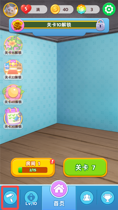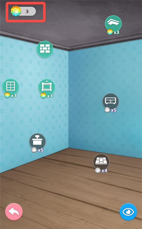 5、点击下方第一个图标进入装修界面,目前我们拥有的花币可以装修亮起来的部分,选择一个部分。