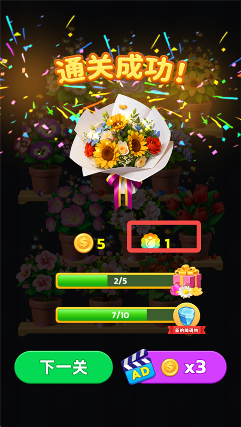 每次成功的插花消除挑战都会带来花朵币,可以用来装修你的豪华华花房。梦幻般的花房等待你来打造,让你的设计才能充分发挥,展现出你独特的品味。