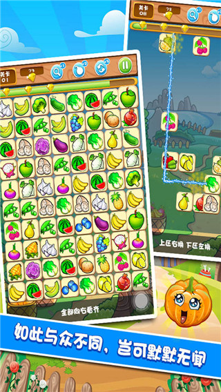 果蔬连连看3是一款操作简单有趣好玩的以蔬菜水果为题材的消除类游戏,采用了优秀的萌系卡通风格画风,画面十分可爱温馨,内有超多可爱的水果蔬菜,十分养眼,能够让玩家在游玩的时候享受精彩的视觉体验。