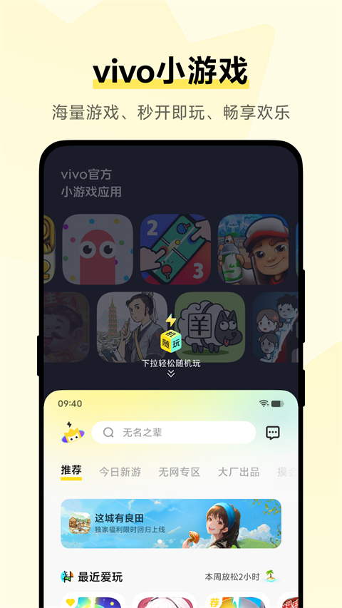 1、海量游戏,免安装直接玩,尽在vivo小游戏;