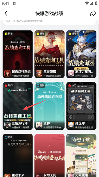 《鸣潮》抽卡分析、《原神》地图资源查询器、《永劫无间手游》战绩查询、《绝区零》战绩查询、《穿越火线手游》体验服、《蛋仔派对》组队交友中心...等多个热门游戏工具辅助,畅玩游戏更轻松。