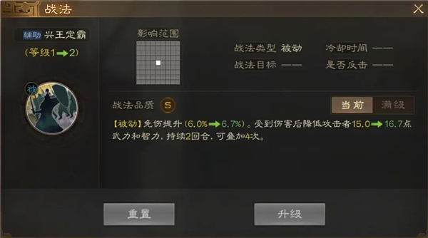 程普作为毫无疑问的前排肉盾武将,自带战法【兴王定霸】在自己受伤后削弱敌军。很显然,他最适合的打法套路就是战法牧稳健流,作为绝对稳健的前排抗伤害武将。