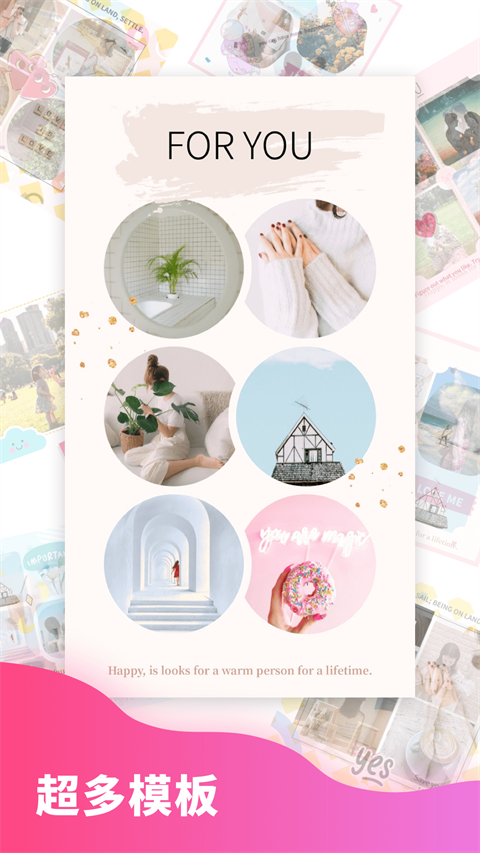 1、七大模版:贴心分为全部、时尚、清新、可爱、唯美、简约、上新七大模版;