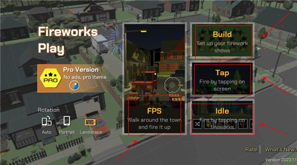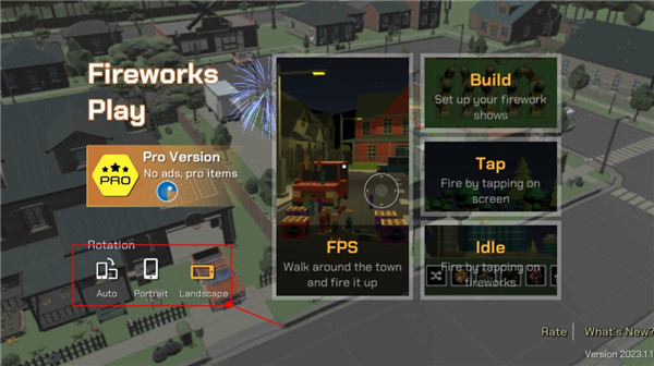 1、打开游戏该界面后,点击这里可以切换游戏的横屏与竖屏模式,以不同角度去欣赏烟花