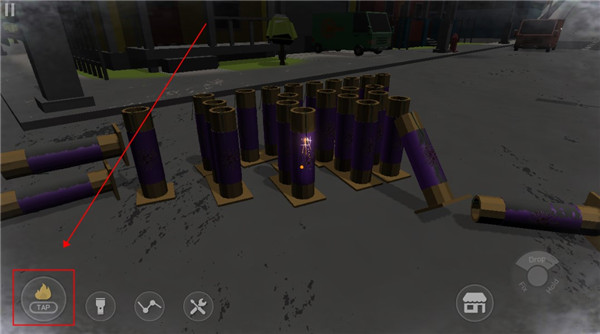 10、摆放好后,我们点击滑动屏幕对准烟花,然后点击旁边的打火机就可以引燃引线,点击一次即可,其余烟花会一起被点燃