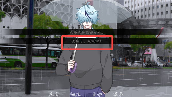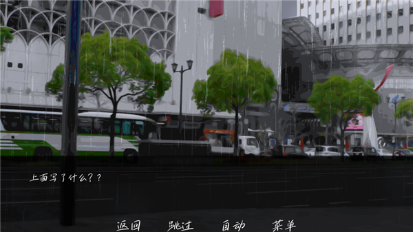 雨中的执念是一款视觉小说互动游戏,背景设立在都市中,玩家扮演一位咖啡馆员工,因一场大雨邂逅了一位陌生男子并接受了他的帮助,在同行的过程中逐渐揭露彼此隐藏的秘密。玩家主要通过点击推进剧情,在决策点处做出自己的选择,每个对话选择都会影响角色关系发展与故事走向。游戏共设计了三个常规结局以及一个隐藏结局,玩家在达成全部常规结局后即可解锁隐藏结局。游戏细腻的手绘画面,搭配上真实的雨声音效,让玩家更沉浸在这个故事中。
