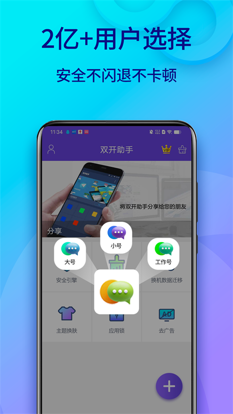 升级全新一代虚拟引擎,安全流畅不闪退,多个分身账号同时在线,消息实时提醒,不错过任何一条重要讯息。