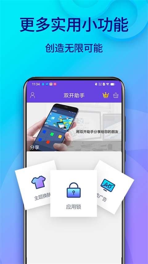 应用锁、隐私空间、安全引擎、VIP客服,换机数据迁移、主题换肤等超多原创功能,创造无限可能!