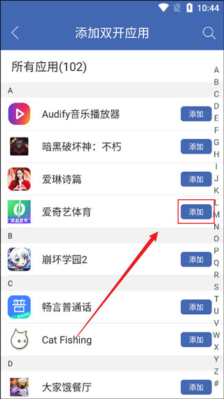 2、然后选择你需要多开的游戏或者软件,点击有些的添加;