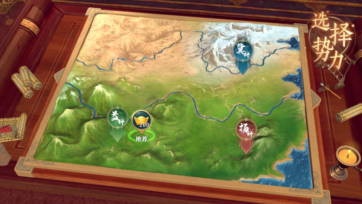 开局即选择国家,也称之为势力。益州=蜀国,位于西南;扬州=吴国,位于东南;冀州=魏国,位于北方。