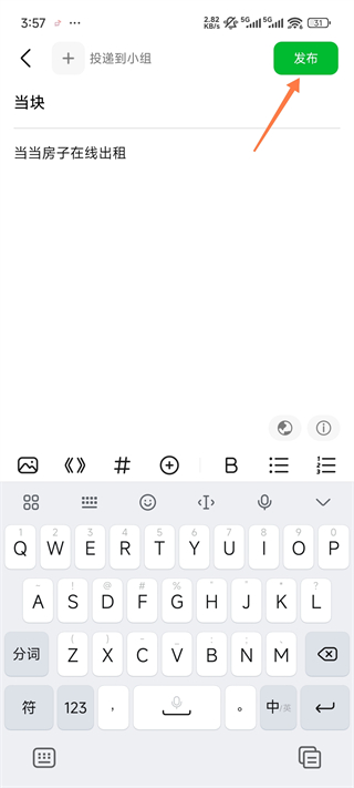 2、先输入标题在输入内容最后点击发布