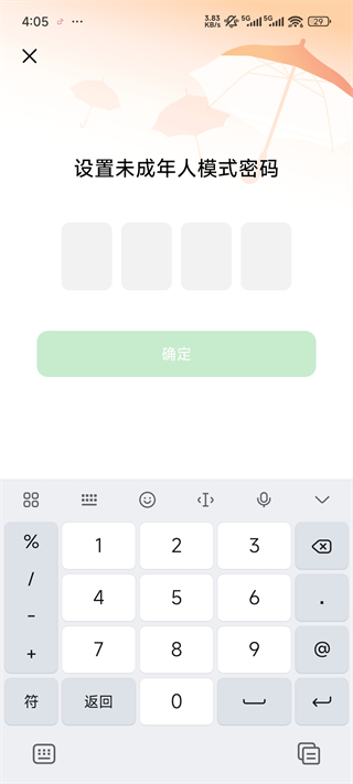 4、设置未成年人模式密码点击确定
