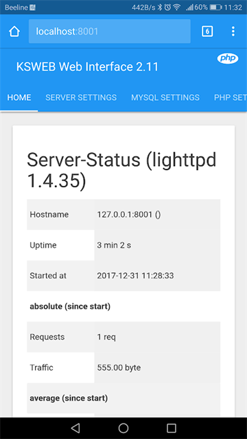 KSWEB是一款非常轻巧的手机服务器软件,有了它,您就可以随时随地的在手机上对网站进行搭建和调试。该软件不仅仅是方便携带,还内置了搭建服务器常用的ngingx、mysql、php等环境,支持自定义编辑配置文件,还支持导入外部源码,从而完成对网站的更新!