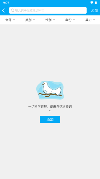 2、添加自己的爱鸽信息;