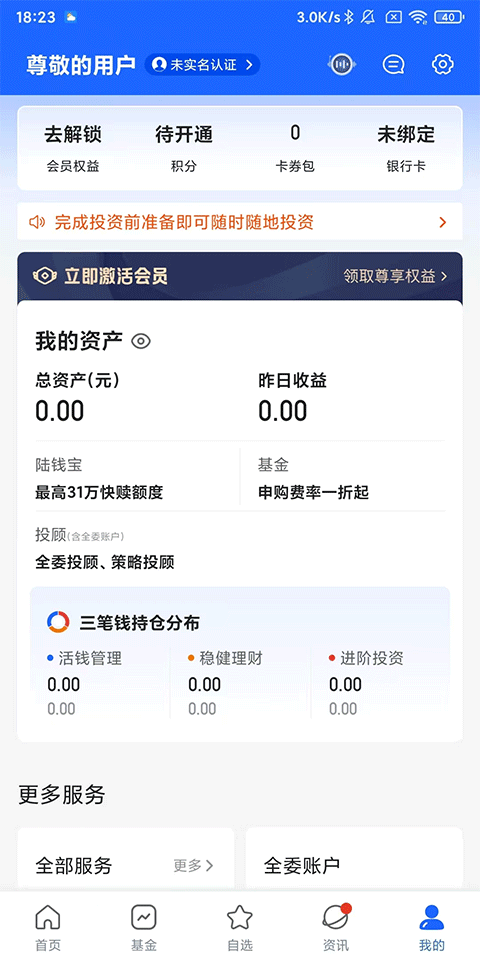3、账户资产,账户资产三笔钱分布全新上线,追踪资产动态一目了然;