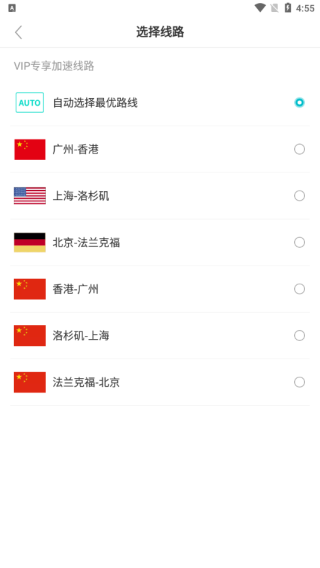 软件的特色很鲜明:全场景覆盖,满足各种需求;一键加速,方便快捷;精选线路,稳定高效;信息安全,保护隐私。想切换加速节点也很简单,进入App找到自适用节点,选好后再点击开始就行。