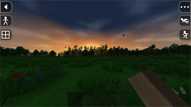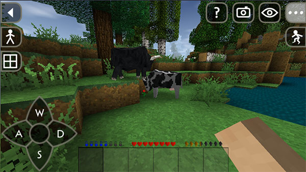 屏幕右上角的省略号按钮“…”用来查看更多功能,问号按钮是帮助,眼睛按钮用来切换视角,可以切换第一人称或第三人称。相机按钮用来截屏