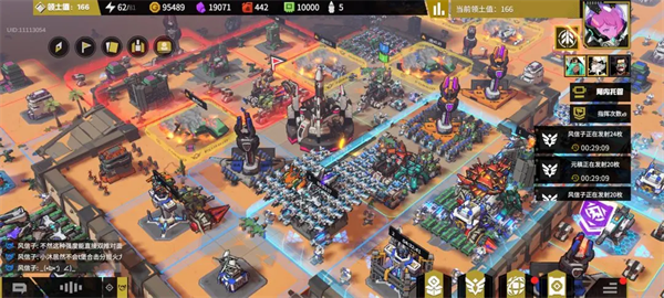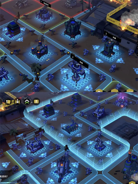 2、分基地,可以给我们3×3的地块,每个地块生成4个角炮。并且里面还有大量小机器人,当范围内受到攻击小机器人会出来作战。分基地升级后还能给周围地块增益。