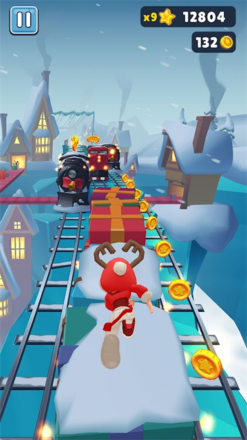 升级技能和完成任务可以增加金币和倍数,使用道具还能冲刺或加分。玩的时候要专注冷静,避免不必要的死亡。这次更新还增加了北极主题,玩家可以在极光下滑行,解锁各种节日造型的皮肤,比如麋鹿、雪人等。