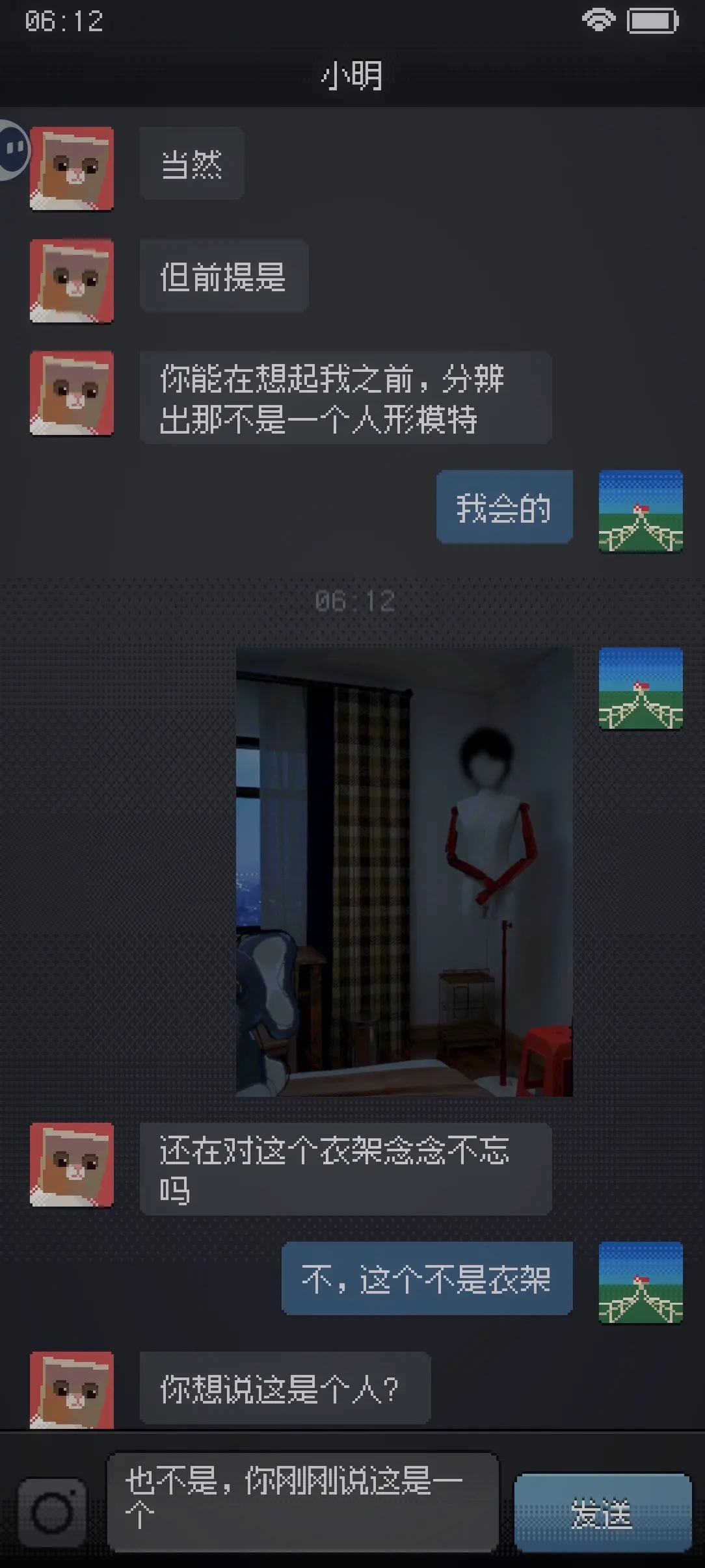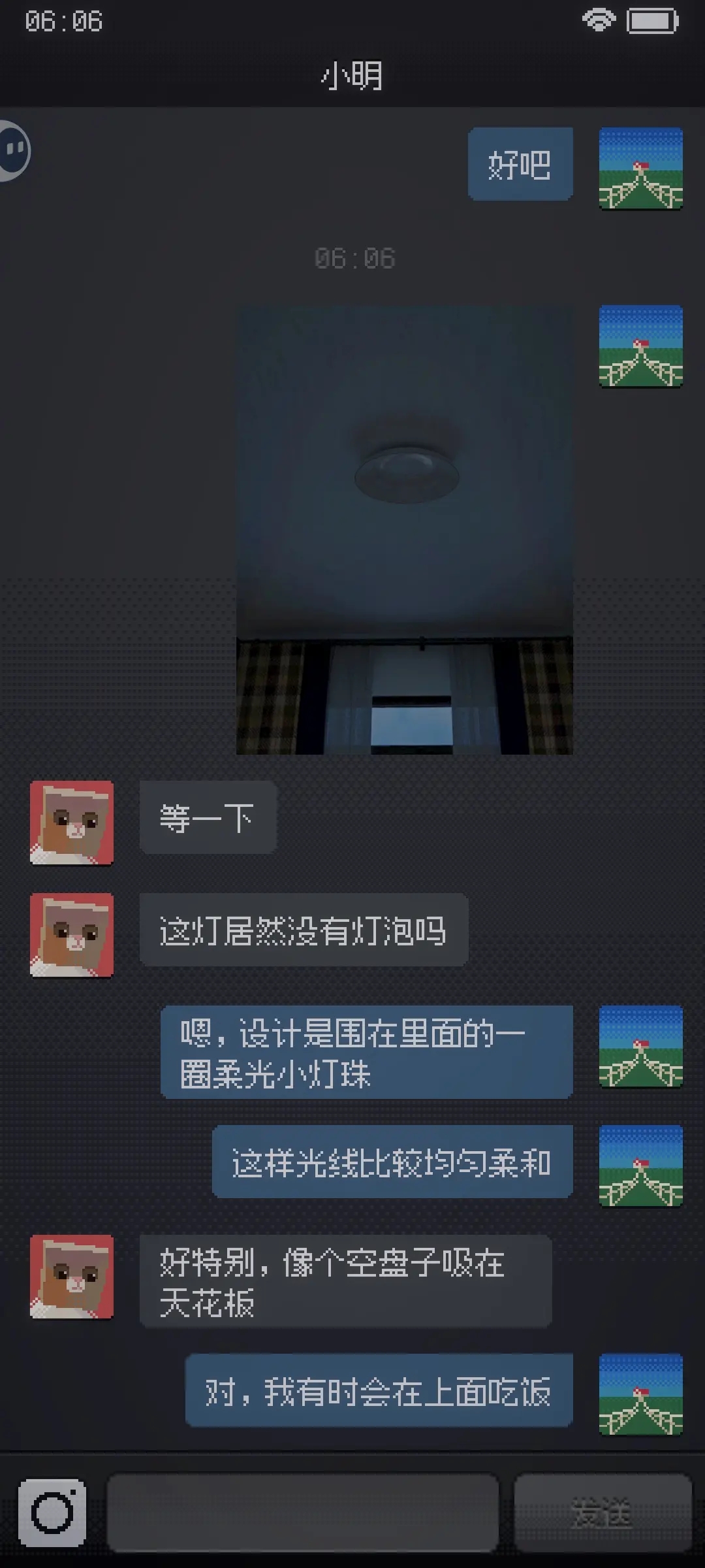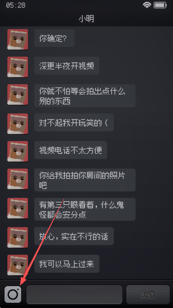 游戏操作简单,进来了就一直聊天,随时可以拍房间里的照片发给小明。每次拍照都有可能出状况,得做好被吓到的心理准备。新手的话记得滑动屏幕探索更多角落,尽量多拍照片解锁隐藏细节哦!虽然游戏还有一些小问题,比如部分机型拍照会黑屏,但整体体验还是挺不错的,喜欢恐怖和悬疑的小伙伴可以试试,绝对能让你半夜不想睡觉!