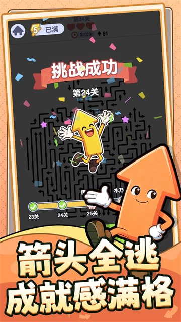 5、箭头全逃,成就感满满