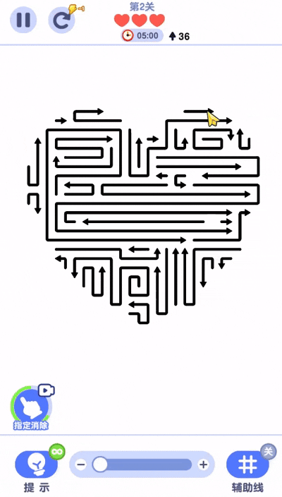 进入游戏后,玩家需要按照箭头方向来解放箭头