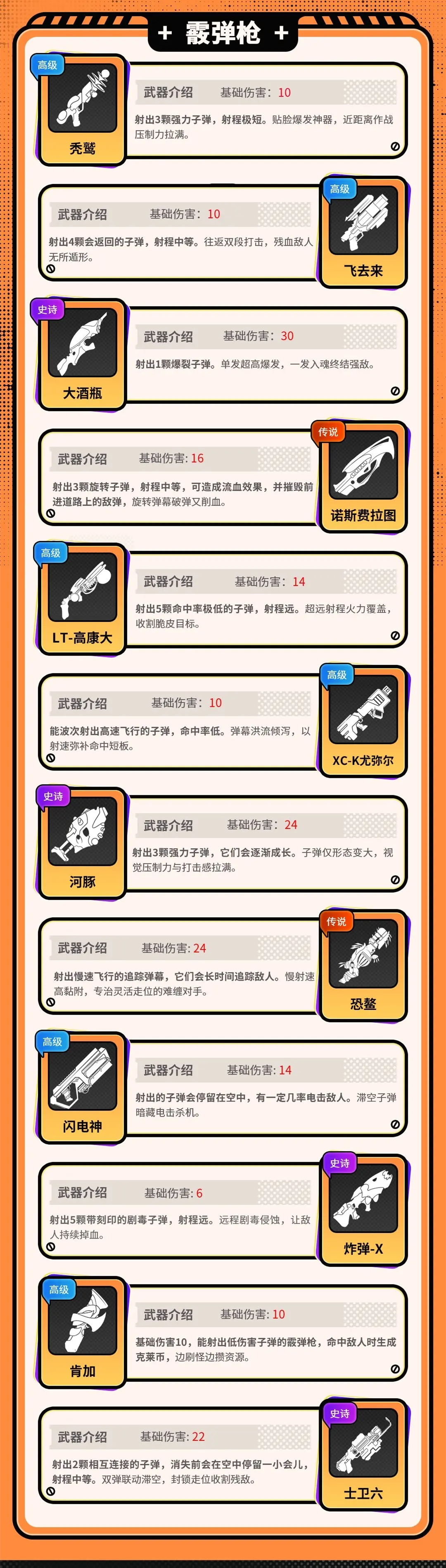 霰弹枪以命中率换取爆发输出,其短板非常考验玩家闪避弹幕的操作,专为吃透游戏玩法的资深玩家量身打造。
