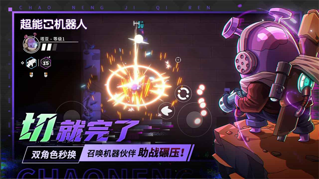 《超能机器人》是一款结合弹幕射击和roguelite玩法的俯视角动作游戏。玩家扮演探险家塔亚,与各种超能机器人并肩作战,反抗邪恶势力。游戏中,塔亚可以通过积攒能量变身不同机械生物,每种形态都有独特的战斗风格和能力体系,玩家可以根据自己的喜好选择升级路线,灵活切换形态应对战斗。