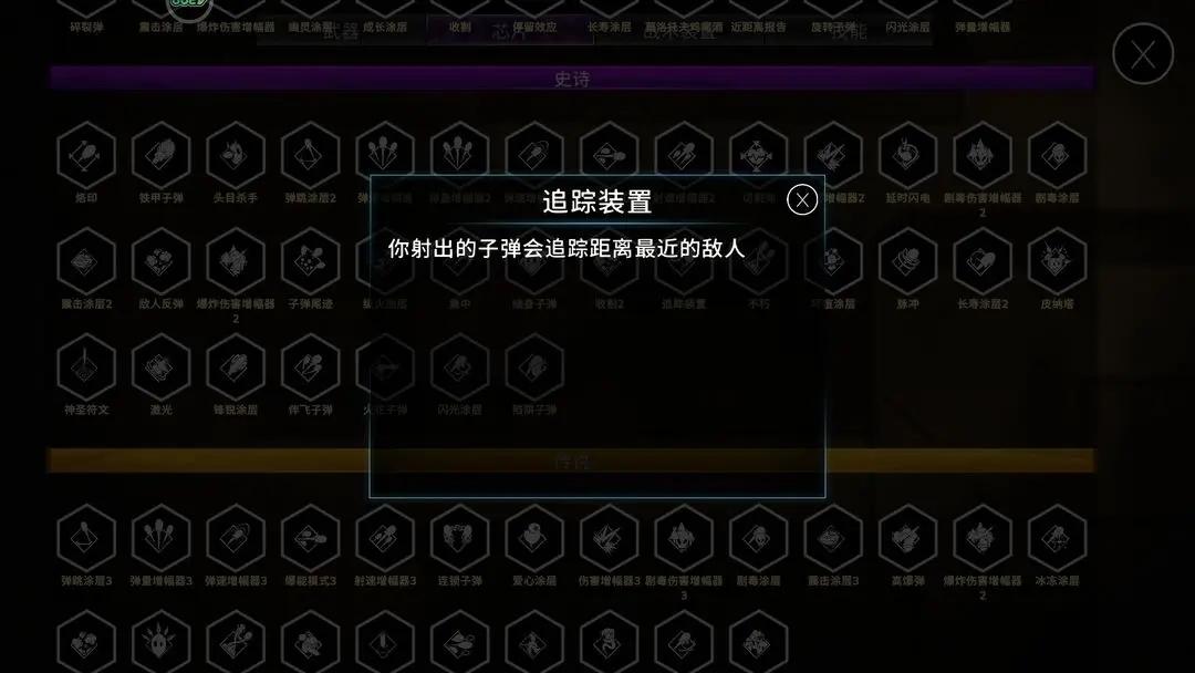 装载芯片【追踪装置】,能够让子弹自动追踪距离最近的敌人,大大弥补了霰弹枪命中率低的短板。
