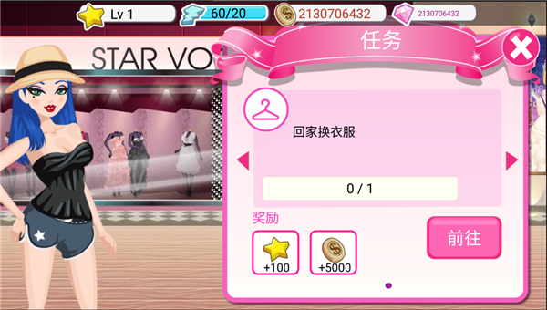 这个游戏看起来挺有意思的,是一个换装养成类的手游,玩家可以扮演一个想成为巨星的女孩,通过选美、演出、唱歌等活动来提升自己的知名度。刚开始的时候,可选的服饰不多,但随着游戏进度推进,会解锁更多好看的装扮,还能根据不同的场合搭配合适的衣服。游戏里还有各种小玩法,可以通过完成任务赚取收入,用来买更多的服装和道具。