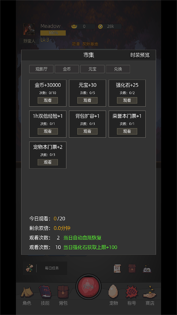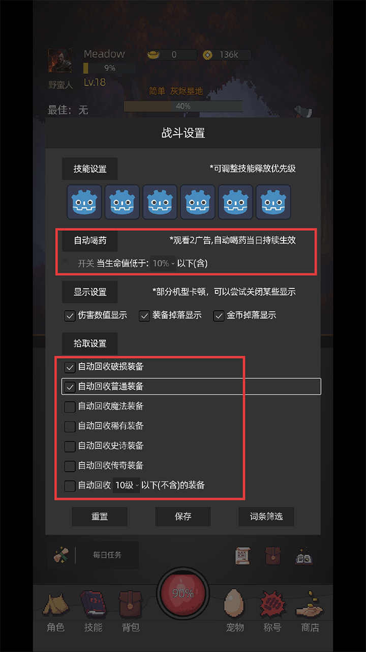 游戏里还有宠物系统,孵化神兽还能激活羁绊加成,关键时刻能逆转战局。进度条实时显示挂机时间,方便规划时间。装备回收、自动回血等功能设计得很贴心,省事又高效。虽然有广告,但选择看广告也能解锁更多功能,这点我觉得挺人性化的。