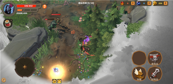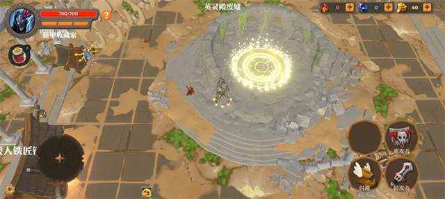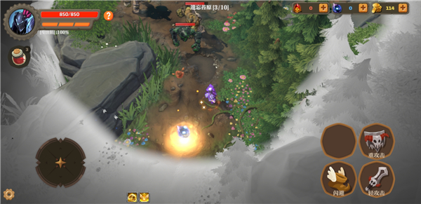 1、进入游戏后,左侧虚拟摇杆控制角色移动,右侧按钮用于攻击、闪避及释放技能。